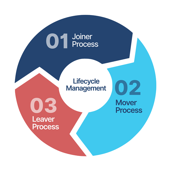 End-to-end identity lifecycle from creation to decommissioning with automated workflows,